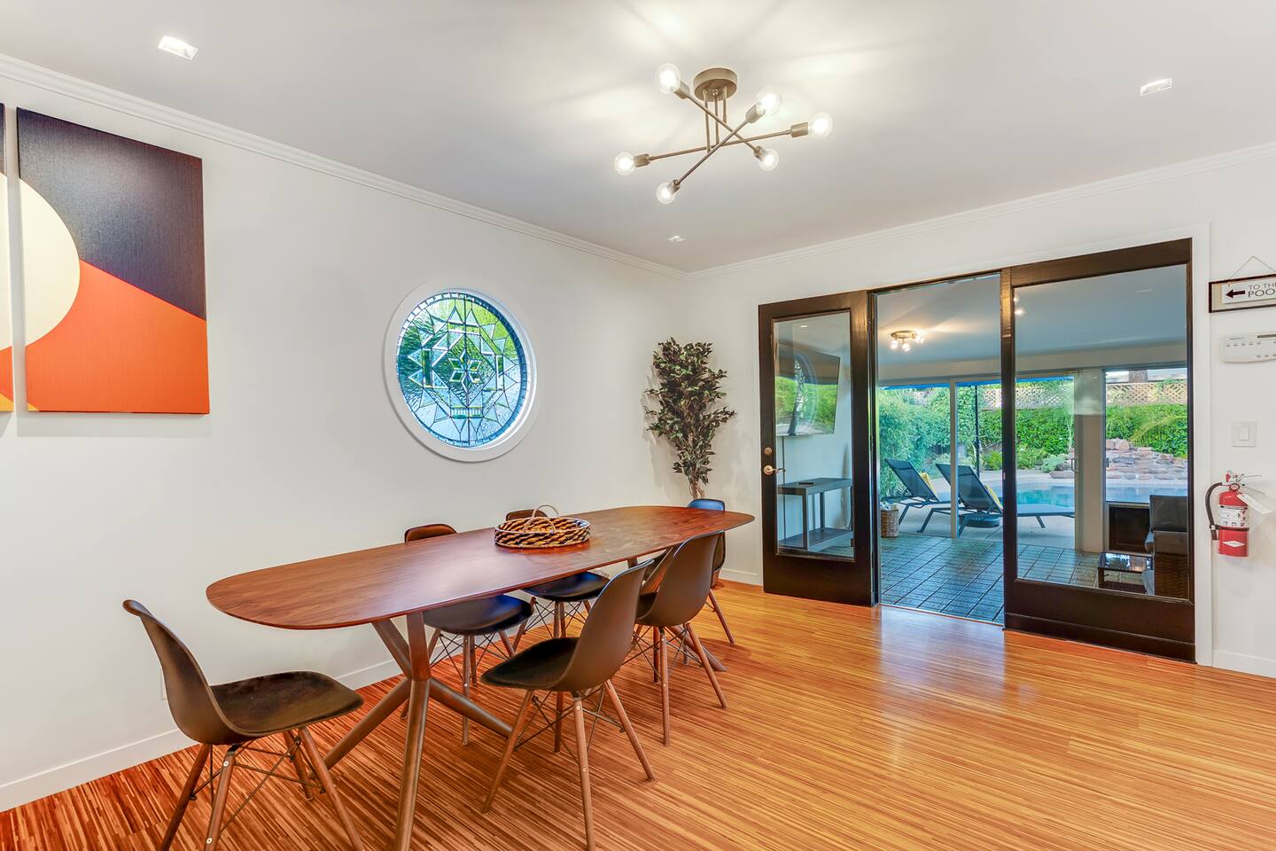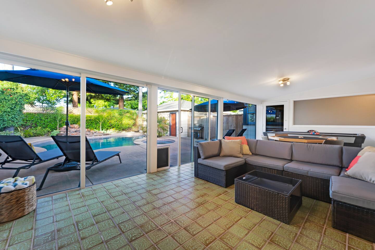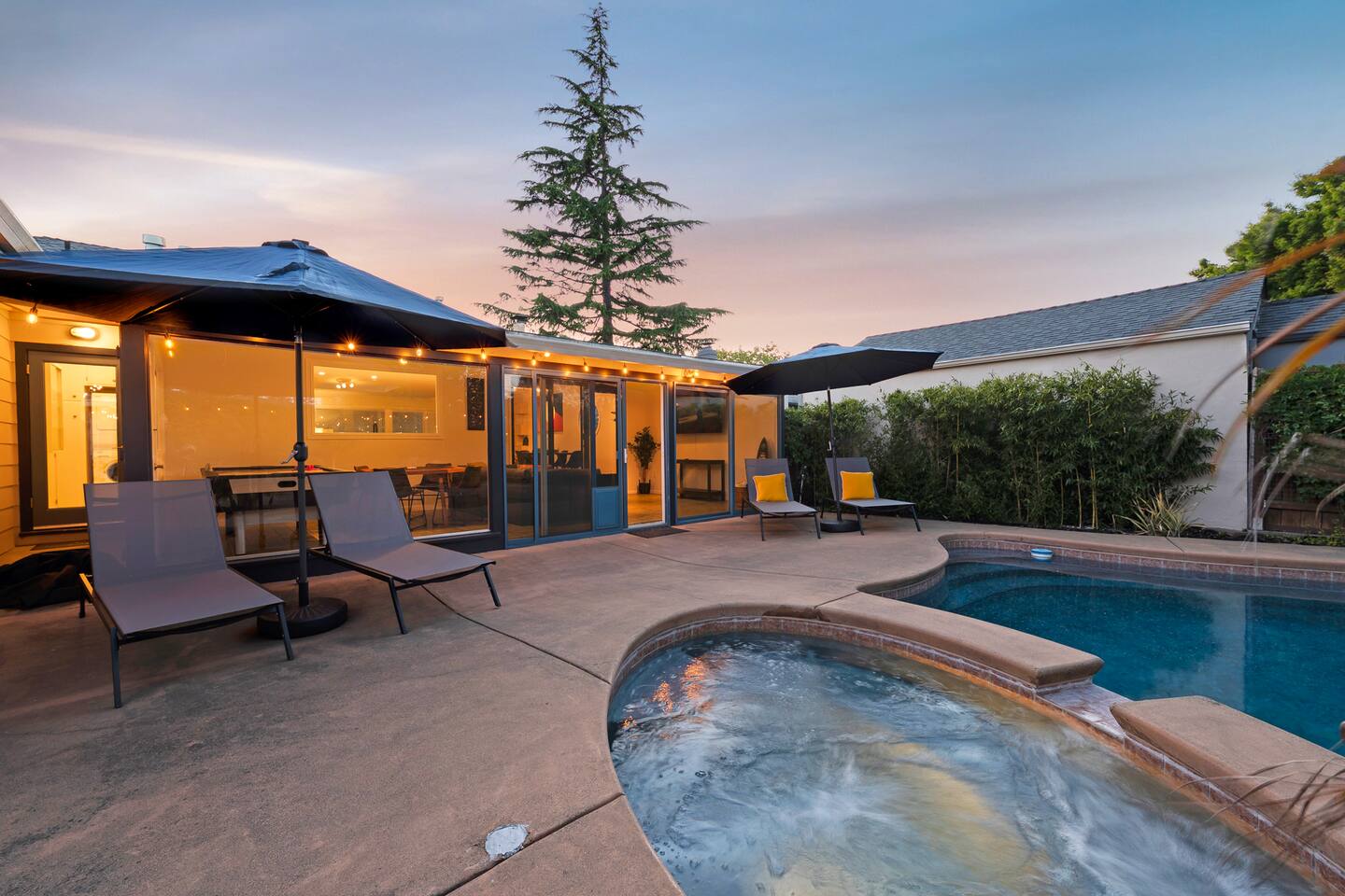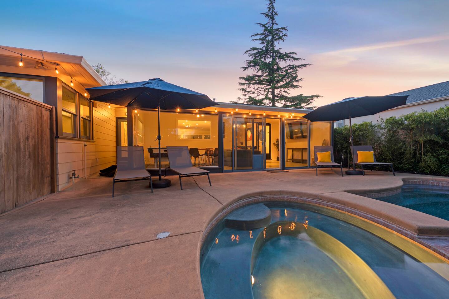 The home is a single-level open concept. After a day soaking up the sun next to the private pool or exploring all our beautiful county as to offer. You can prepare a gourmet meal after hitting the local farmers market in the updated chef's kitchen that is sure to inspire. Challenge the family to a play-off on the classic arcade game, or air hockey table. For a more romantic evening cozy up on the oversized couch, pop on the relaxing gas fireplace, and stream a romcom on the oversized smart TV. When the day is done head to the spacious bedrooms for a good night's sleep in the king-size bed. Or queen size:) You'll want to come back year after year to enjoy all the Midcentury Modern has to offer. well equipped with a pool, hot tub, and spacious chef’s kitchen! *IMPORTANT* This home is in a peaceful residential neighborhood, and while it does offer a private pool and spa for guests to enjoy, it may not be the best fit for all groups, especially those hoping for a livelier or party-style atmosphere. Sound tends to carry more than expected, and even respectful gatherings can sometimes raise concerns with full-time neighbors. That said, if your group is looking for a relaxing, laid-back getaway and is comfortable being mindful of volume, this can be a wonderful home base. Quiet hours of 9pm-8am daily are strictly enforced. Property is a neighborhood setting.
