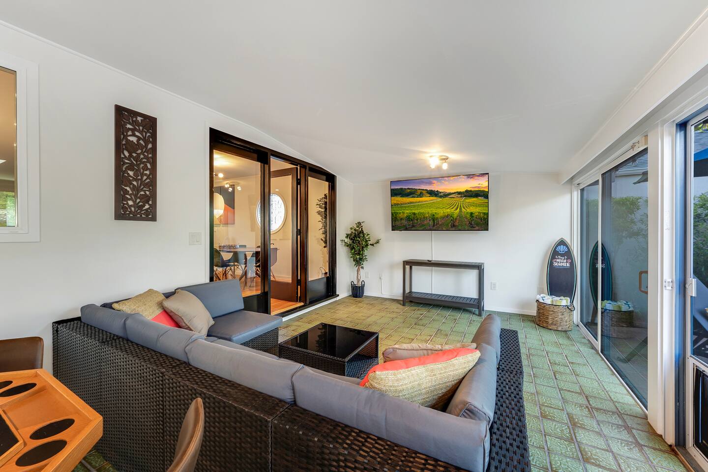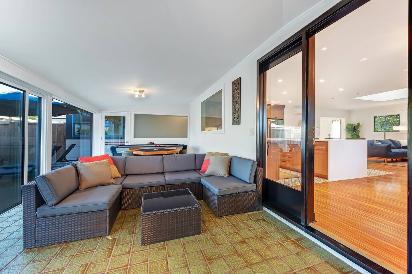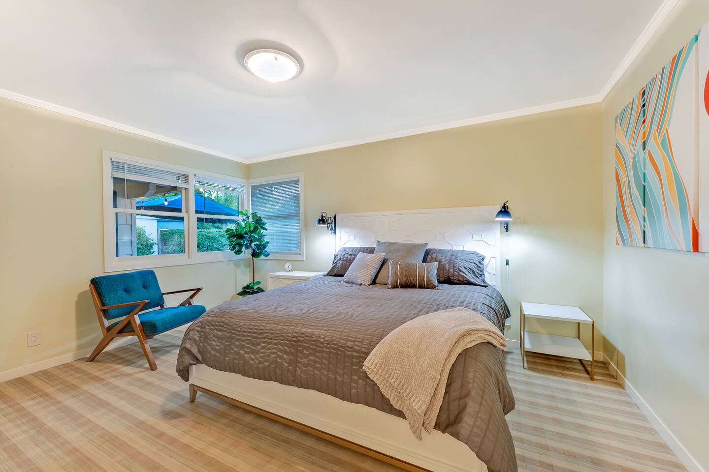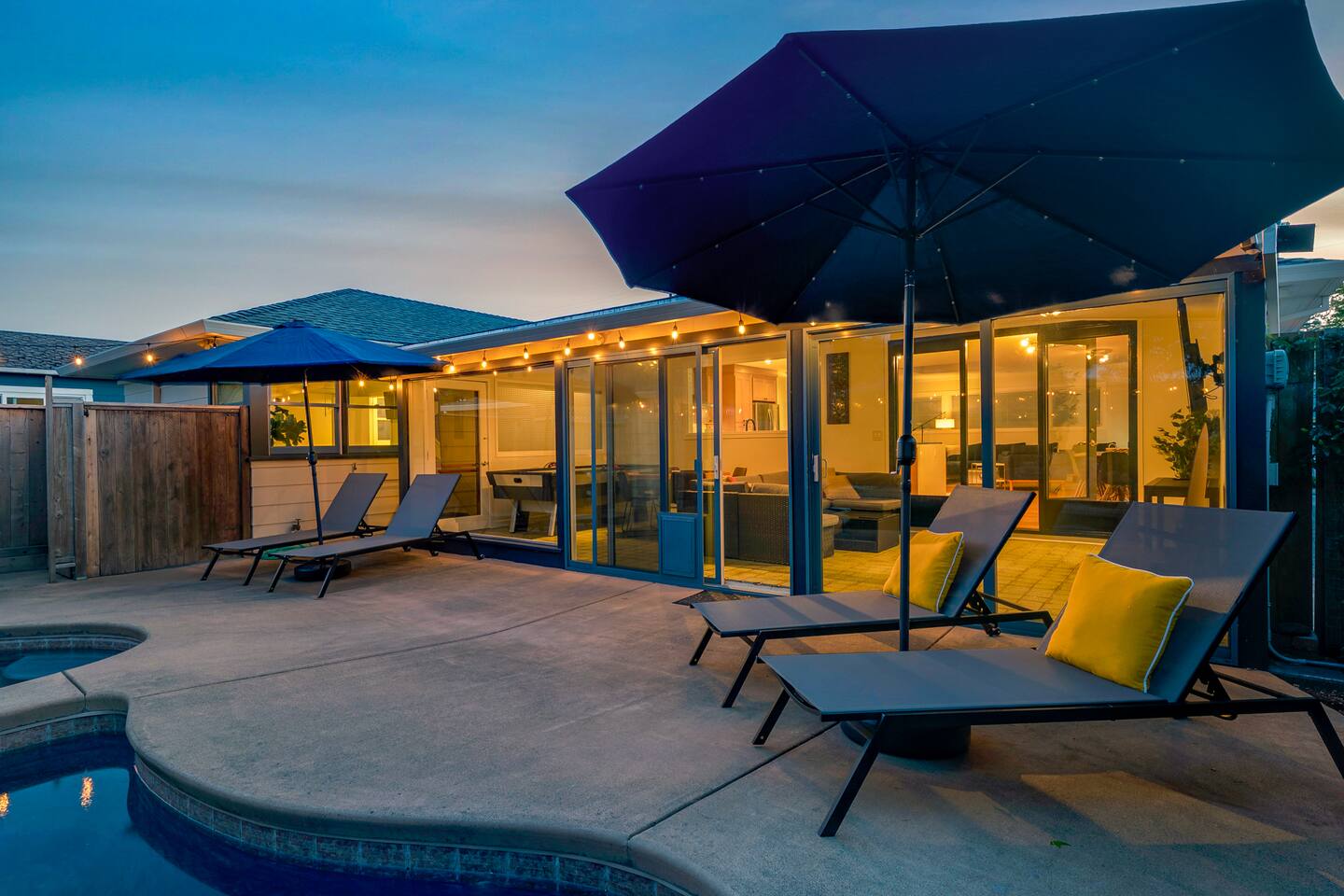 The home is a single-level open concept. After a day soaking up the sun next to the private pool or exploring all our beautiful county as to offer. You can prepare a gourmet meal after hitting the local farmers market in the updated chef's kitchen that is sure to inspire. Challenge the family to a play-off on the classic arcade game, or air hockey table. For a more romantic evening cozy up on the oversized couch, pop on the relaxing gas fireplace, and stream a romcom on the oversized smart TV. When the day is done head to the spacious bedrooms for a good night's sleep in the king-size bed. Or queen size:) You'll want to come back year after year to enjoy all the Midcentury Modern has to offer. well equipped with a pool, hot tub, and spacious chef’s kitchen! *IMPORTANT* This home is in a peaceful residential neighborhood, and while it does offer a private pool and spa for guests to enjoy, it may not be the best fit for all groups, especially those hoping for a livelier or party-style atmosphere. Sound tends to carry more than expected, and even respectful gatherings can sometimes raise concerns with full-time neighbors. That said, if your group is looking for a relaxing, laid-back getaway and is comfortable being mindful of volume, this can be a wonderful home base. Quiet hours of 9pm-8am daily are strictly enforced. Property is a neighborhood setting.