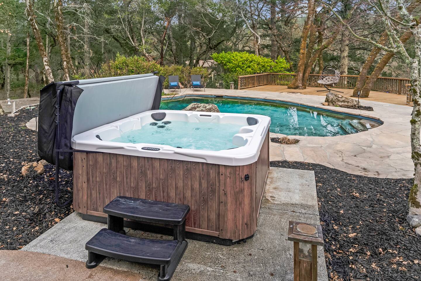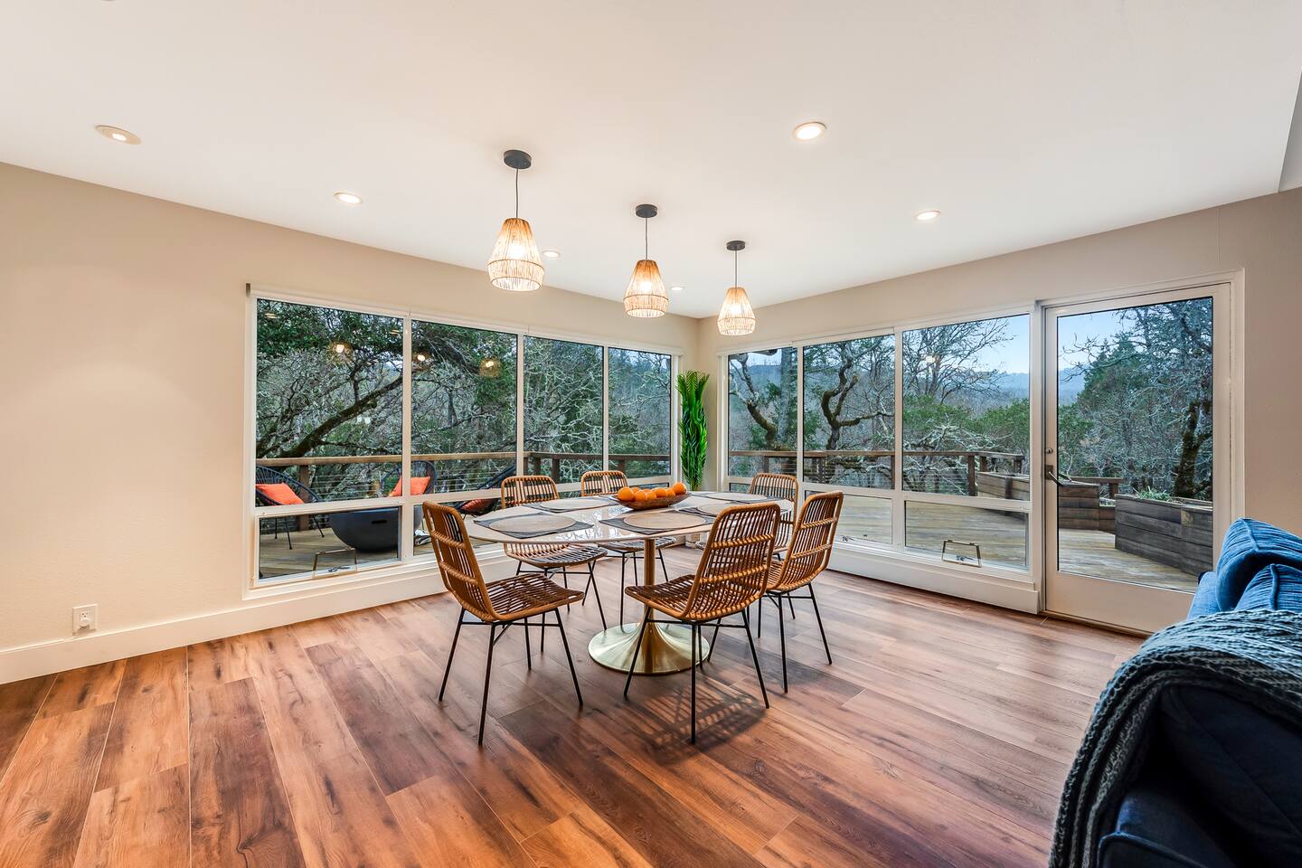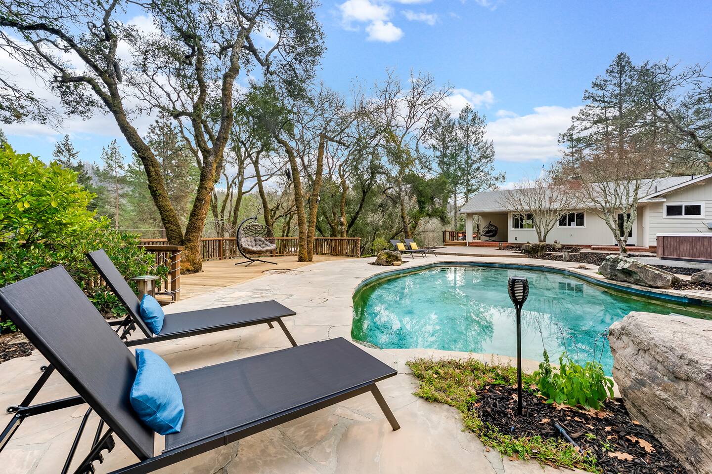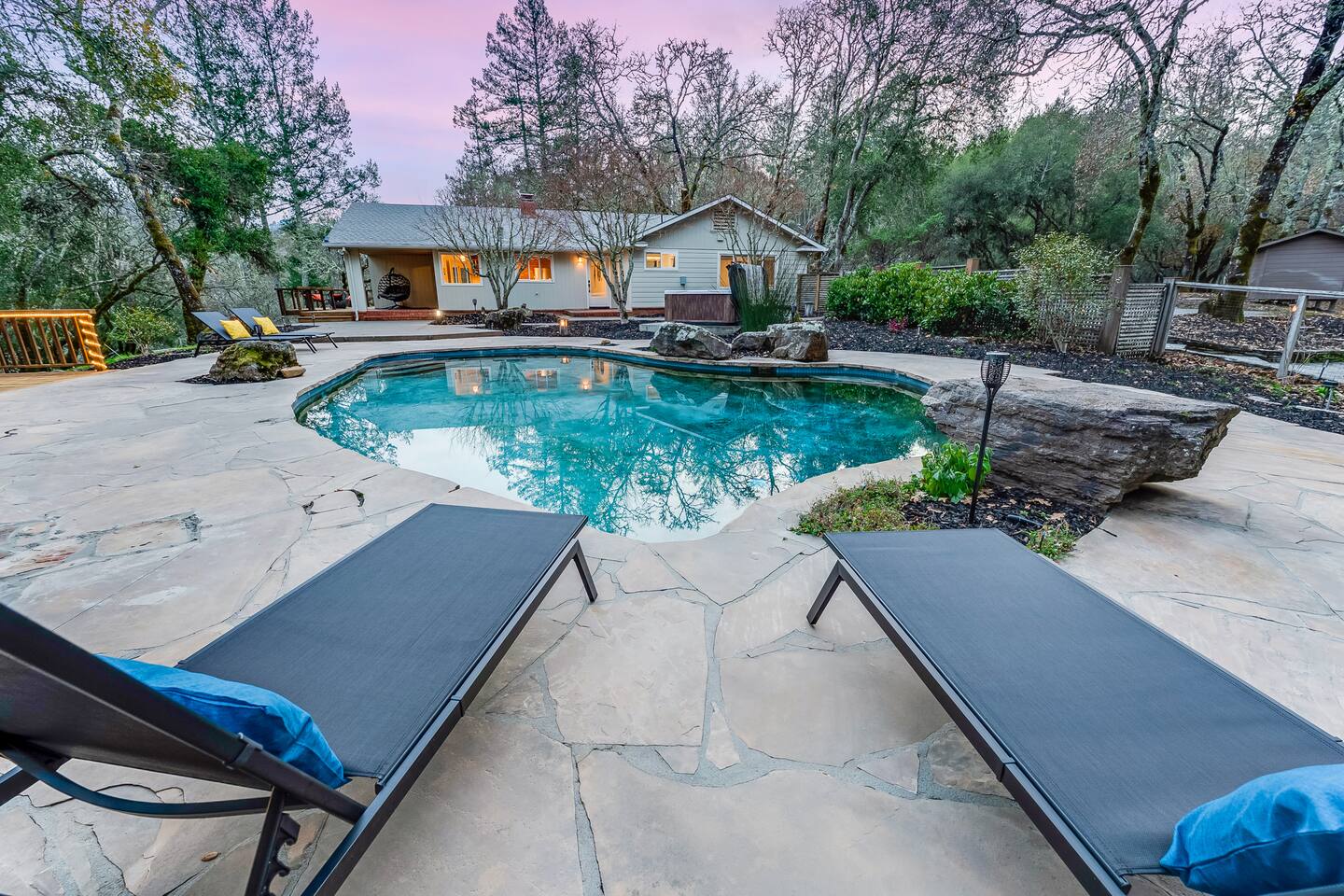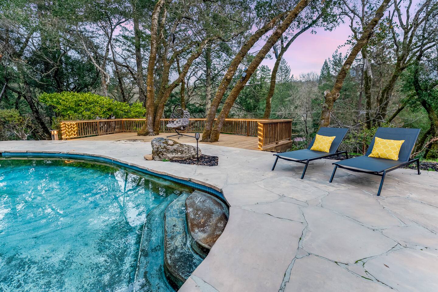 ⭐️ This is a COUNTRY property but close to city amenities, guests will enjoy the best of both worlds; privacy, serenity, and all the city of Santa Rosa has to offer nearby. ⭐️ The home is on a large private property and is behind a private gate with coded access, down a private road with deeded access. We ask our guests to please drive slowly once entering the gate as they will need to drive through the neighbor’s adjoining property. No walking or recreating on the road. ⭐️ Relax by the gorgeous pool, take a soak in the hot tub, and soak up the sun on the expansive deck while listening to the year-round babbling creek below. In the evening cuddle up on the couch in front of the electric fireplace and watch the colorful flames dance. Watch a movie on the oversized smart TV. Or Star Gaze just outside on the deck in a place that feels worlds away from the city lights and enjoys all that nature has to offer. You will want to come back and enjoy the beautiful, quiet serenity year after year. ⭐️ Because this is a COUNTRY property, there is abundant wildlife on the property. Children and pets MUST be monitored at all times without exception. ⭐️ The property is Just 15 minutes to Montgomery Village. Calistoga is 15-20 minutes away and Sonoma Valley is also 15-20 minutes away. ⛔️ This is NOT a party house!