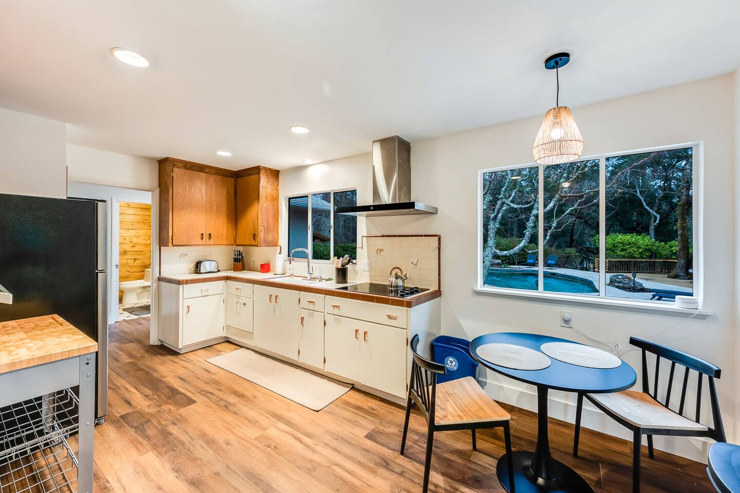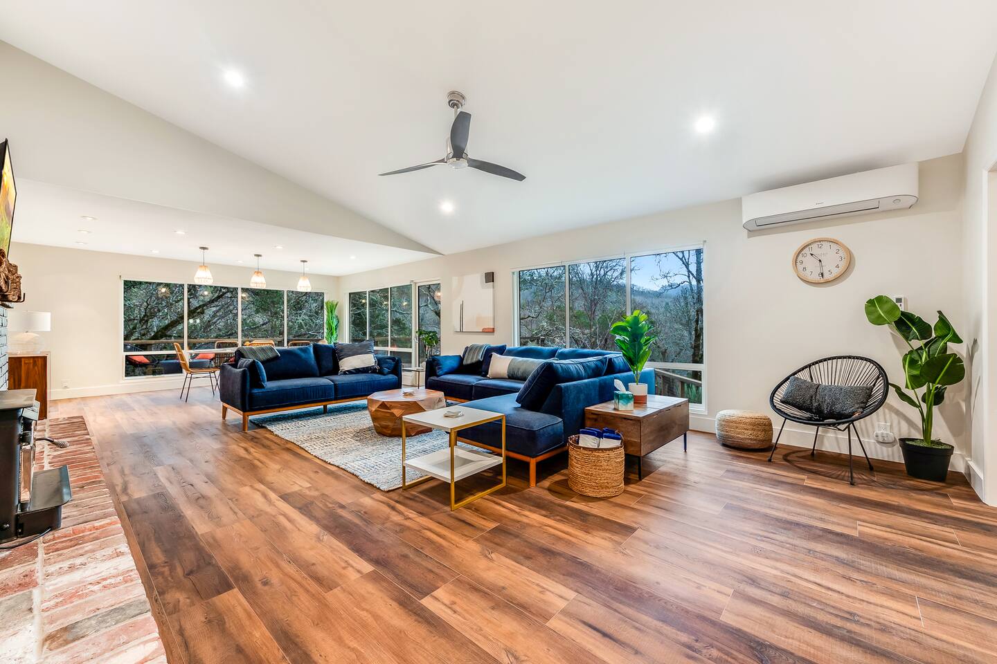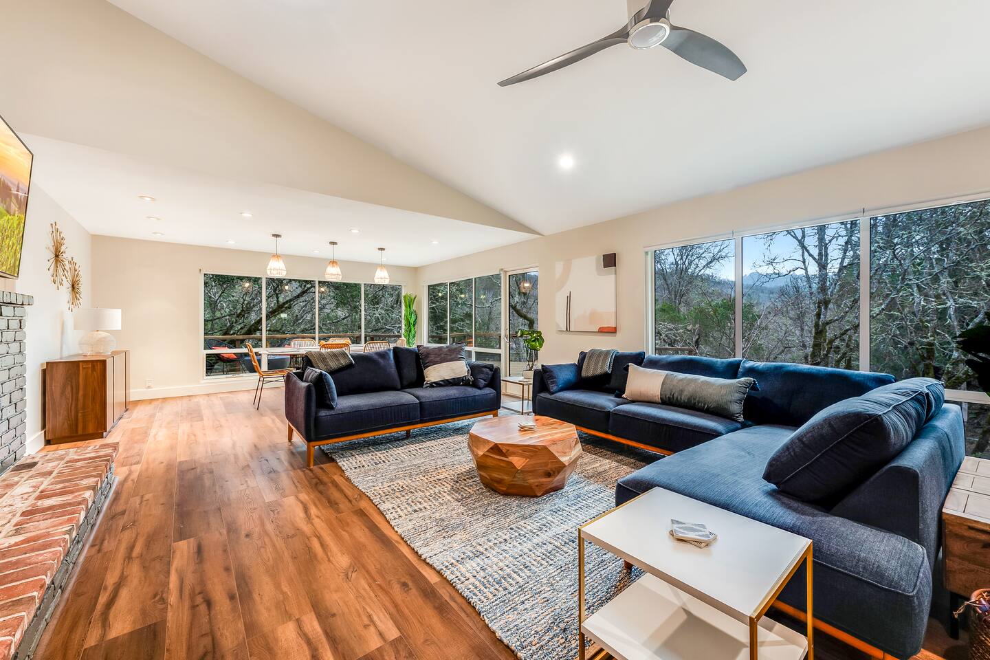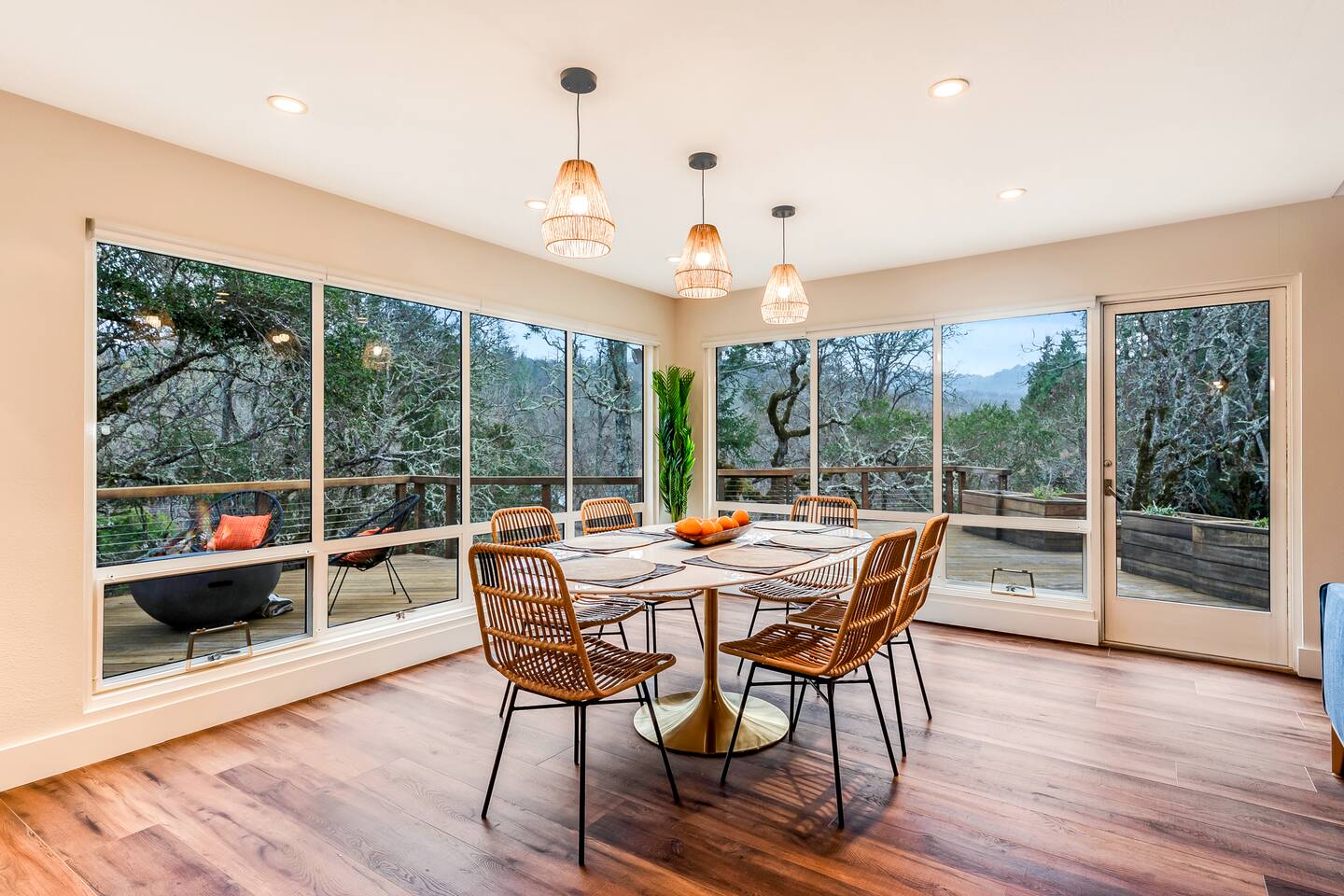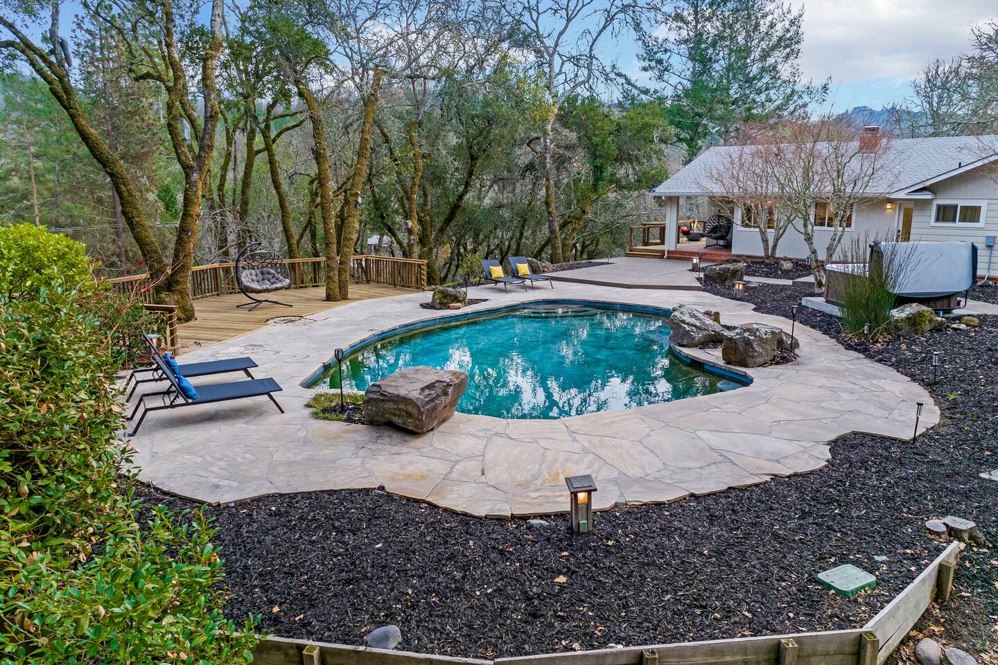 ⭐️ This is a COUNTRY property but close to city amenities, guests will enjoy the best of both worlds; privacy, serenity, and all the city of Santa Rosa has to offer nearby. ⭐️ The home is on a large private property and is behind a private gate with coded access, down a private road with deeded access. We ask our guests to please drive slowly once entering the gate as they will need to drive through the neighbor’s adjoining property. No walking or recreating on the road. ⭐️ Relax by the gorgeous pool, take a soak in the hot tub, and soak up the sun on the expansive deck while listening to the year-round babbling creek below. In the evening cuddle up on the couch in front of the electric fireplace and watch the colorful flames dance. Watch a movie on the oversized smart TV. Or Star Gaze just outside on the deck in a place that feels worlds away from the city lights and enjoys all that nature has to offer. You will want to come back and enjoy the beautiful, quiet serenity year after year. ⭐️ Because this is a COUNTRY property, there is abundant wildlife on the property. Children and pets MUST be monitored at all times without exception. ⭐️ The property is Just 15 minutes to Montgomery Village. Calistoga is 15-20 minutes away and Sonoma Valley is also 15-20 minutes away. ⛔️ This is NOT a party house!