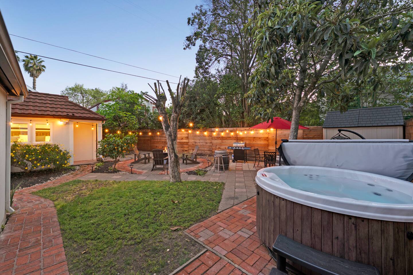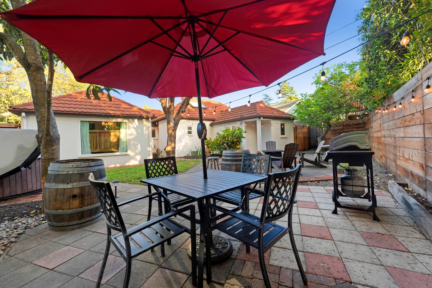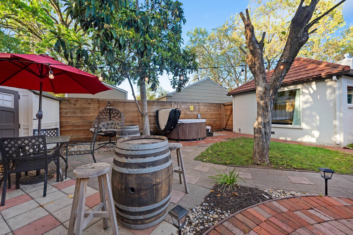 Wonderful downtown location close to amenities, including world-class breweries, restaurants, coffee, and wineries, and plentiful outdoor activities. 1 hour drive to beautiful San Francisco. The backyard is private and serene and includes a hot tub, fire pit, BBQ, oversized swing, & fruit trees. The home has good natural separation between the two downstairs spacious bedrooms. There is a bonus room - den area upstairs accessible to guests with a queen-sized bed not included in the bedroom count but is part of the home. This is NOT a party house and is in a neighborhood setting. Vacation Rental quiet hours in the City of Santa Rosa are 9pm-8am daily and are strictly enforced.