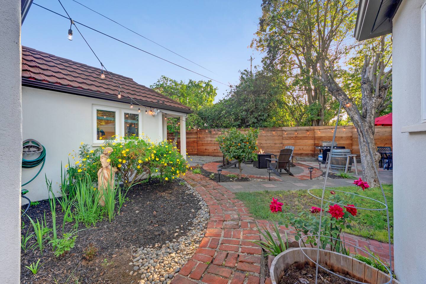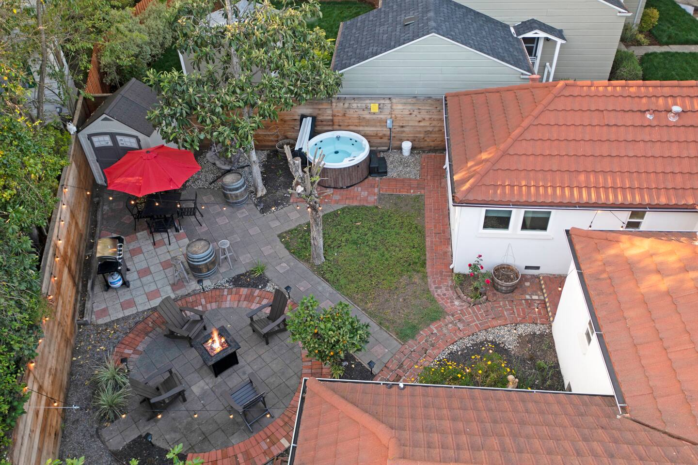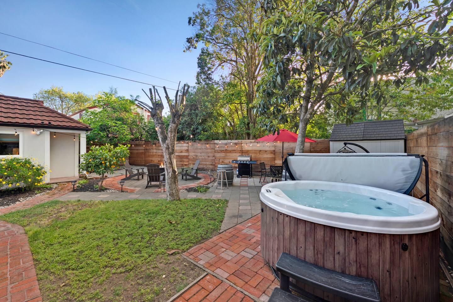 Wonderful downtown location close to amenities, including world-class breweries, restaurants, coffee, and wineries, and plentiful outdoor activities. 1 hour drive to beautiful San Francisco. The backyard is private and serene and includes a hot tub, fire pit, BBQ, oversized swing, & fruit trees. The home has good natural separation between the two downstairs spacious bedrooms. There is a bonus room - den area upstairs accessible to guests with a queen-sized bed not included in the bedroom count but is part of the home. This is NOT a party house and is in a neighborhood setting. Vacation Rental quiet hours in the City of Santa Rosa are 9pm-8am daily and are strictly enforced.